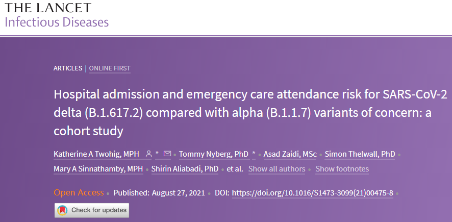 【柳叶刀子刊】4万多名基于全基因组测序确认的病例,首次报告感染Delta变体的住院风险是Alpha的2倍