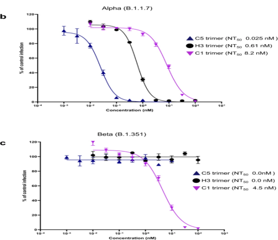 “这些是我们在PHE检测过的最有效的SARS-CoV-2中和剂。我们相信,纳米抗体独特的结构和强度有助于它们在预防和治疗新冠肺炎方面的巨大潜力,并期待着合作将这项工作推进临床研究。”