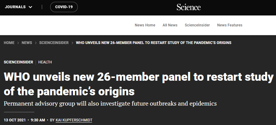 【Science重磅】世卫组织成立中科院杨运桂在内的新团队,重启对大流行起源可能来于实验室泄漏的研究!