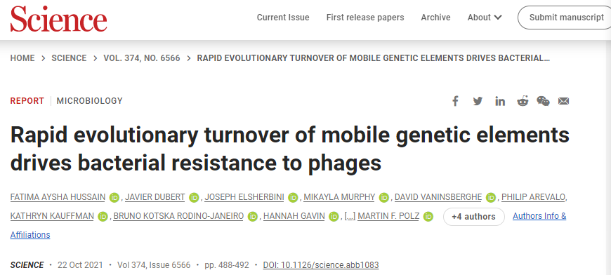 【Science】破解细菌体内可交换的基因组有望抵御噬菌体的杀伤!
