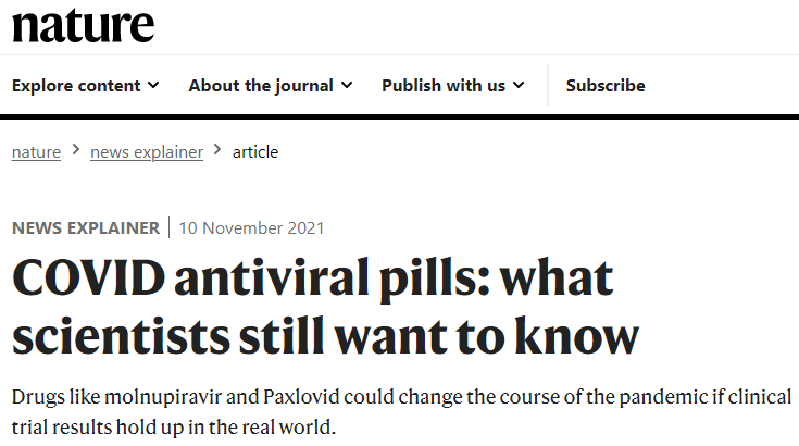 11月4日,英国成为第一个批准molnupiravir的国家。该药物由位于新泽西州肯尼尔沃思的默克(Merck)公司和位于佛罗里达州迈阿密的Ridgeback Biotherapeutics公司开发。就在一个多月前,这两家公司宣布,这种名为Lagevrio的抗病毒药物将轻度或中度新冠病毒感染者住院的风险降低了一半。在英国批准后一天,位于纽约市的辉瑞公司,宣布其抗病毒药物Paxlovid将住院人数减少89%。