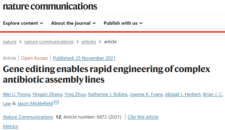 【Nature子刊】基因编辑——生产抗生素的新途径!