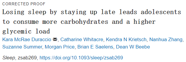 结果发现,与健康睡眠的青少年相比,睡眠不足的青少年摄入了更多可能加速血糖升高的食物——比如高碳水化合物和添加糖的食物,或含糖饮料。这些变化主要发生在深夜(晚上9点以后)。与健康睡眠的青少年相比,睡眠不足的青少年全天吃的水果和蔬菜也较少。这些结果表明,睡眠不足的青少年表现出的饮食模式可能会有影响体重和心脏代谢结果的风险。未来促进健康的努力应包括促进最佳睡眠以增加健康的饮食习惯。