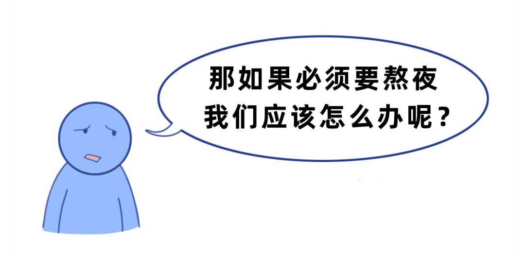 如果“不得不”要熬夜,那么熬夜前、后都应该补补觉。给身体补充一定精力,让自己不那么疲劳,做事情的效率也会提高。