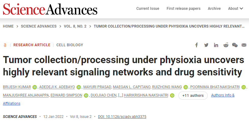 来自印第安纳大学医学院的研究人员发现了新的方法来找出一种药物对癌症的疗效。他们的研究结果详见《Science Advances》发表的一篇新论文,题为“Tumor collection/processing under physioxia uncovers highly relevant signaling networks and drug sensitivity”。
