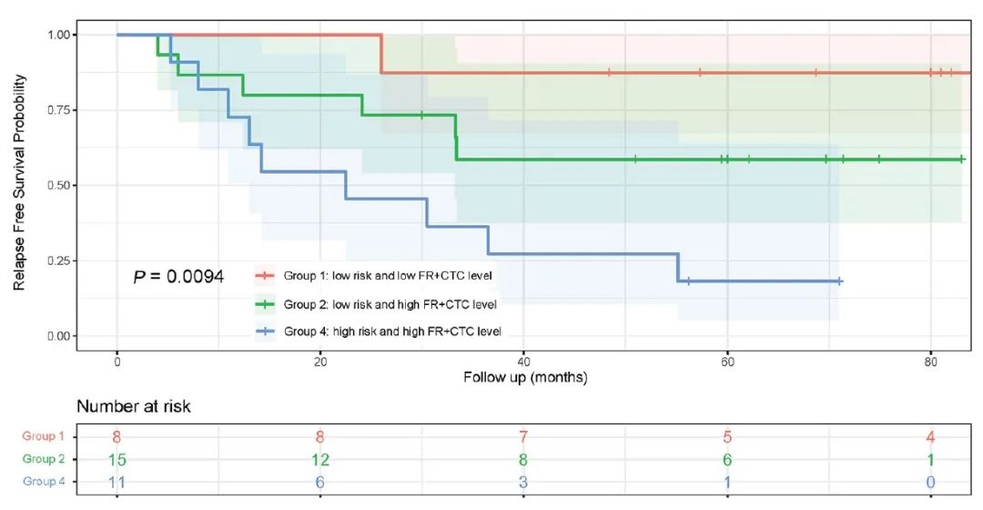 不同术前FR+CTC水平/病理分组的RFS