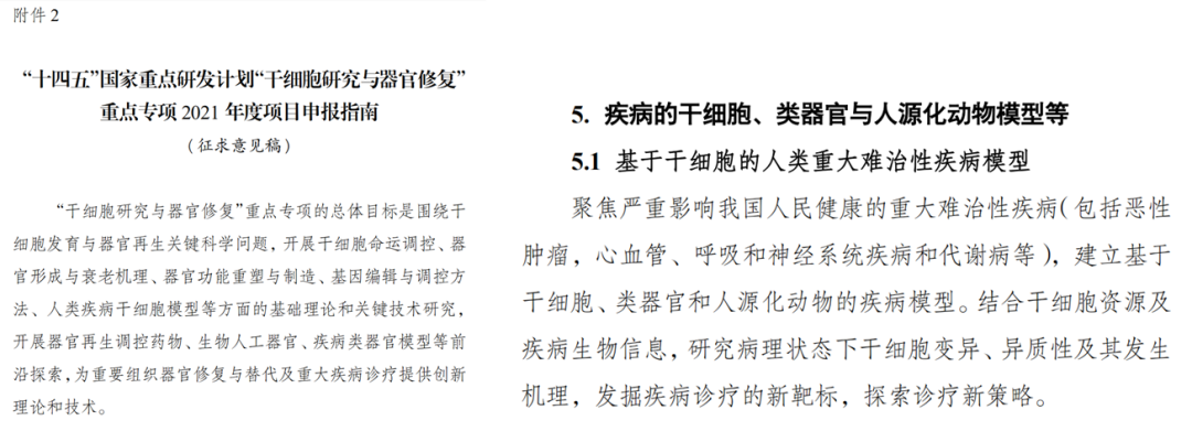 2021年1月28日,科技部下发的《关于对“十四五”国家重点研发计划6个重点专项2021年度项目申报指南征求意见的通知》中,把“基于类器官的恶性肿瘤疾病模型”列为“十四五”国家重点研发计划中首批启动重点专项任务。