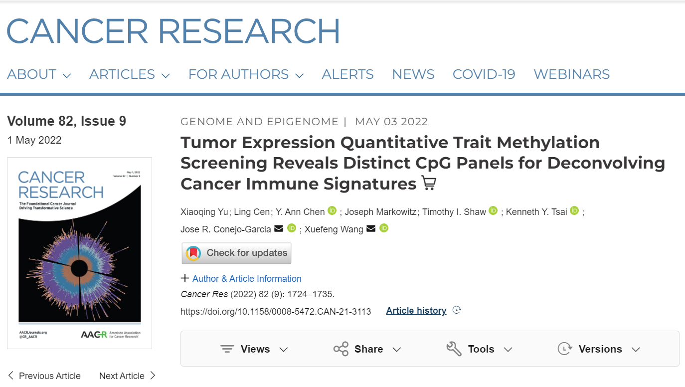 https://aacrjournals.org/cancerres/article-abstract/82/9/1724/694708/Tumor-Expression-Quantitative-Trait-Methylation?redirectedFrom=fulltext