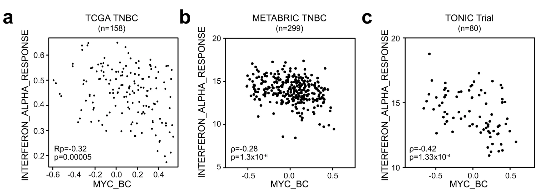 研究者们发现虽然MYC对MYC升高肿瘤患者的免疫检查点阻断疗法提出了挑战,但与抗PD-L1联合使用的其他疗法有必要进行测试,并有望提高生存率。研究表明MYC信号传导与患者免疫浸润不良相关,MYC与免疫检查点抑制后生存率低下有关,MHC-I在MYC激活的肿瘤中下调,干扰素在MYC升高的肿瘤中拯救MHC-I,CpG/aOX40治疗可提高抗PD-L1疗效。MYC升高肿瘤患者可能需要除抗PD1 / PD-L1单药治疗之外的额外免疫疗法,以使用免疫检查点抑制剂实现最佳生存效益。