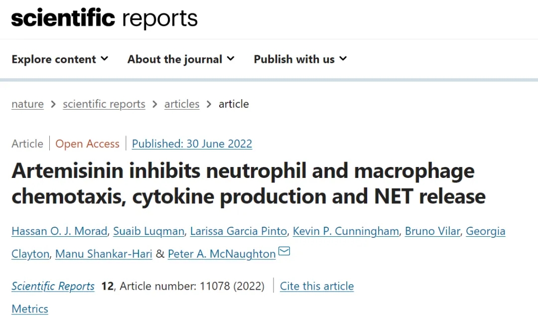 近日,来自伦敦国王学院的专家们发现了青蒿素能运用于先天免疫系统的过度激活抑制剂。该研究成果发表在《 Scientific Reports》上。研究论文题目为“Artemisinin inhibits neutrophil and macrophage chemotaxis, cytokine production and NET release”。先天免疫系统的过度激活被认为会导致免疫细胞对组织的破坏性入侵,从而导致细胞因子,趋化因子和嗜中性粒细胞外陷阱(NETs)的过度释放。