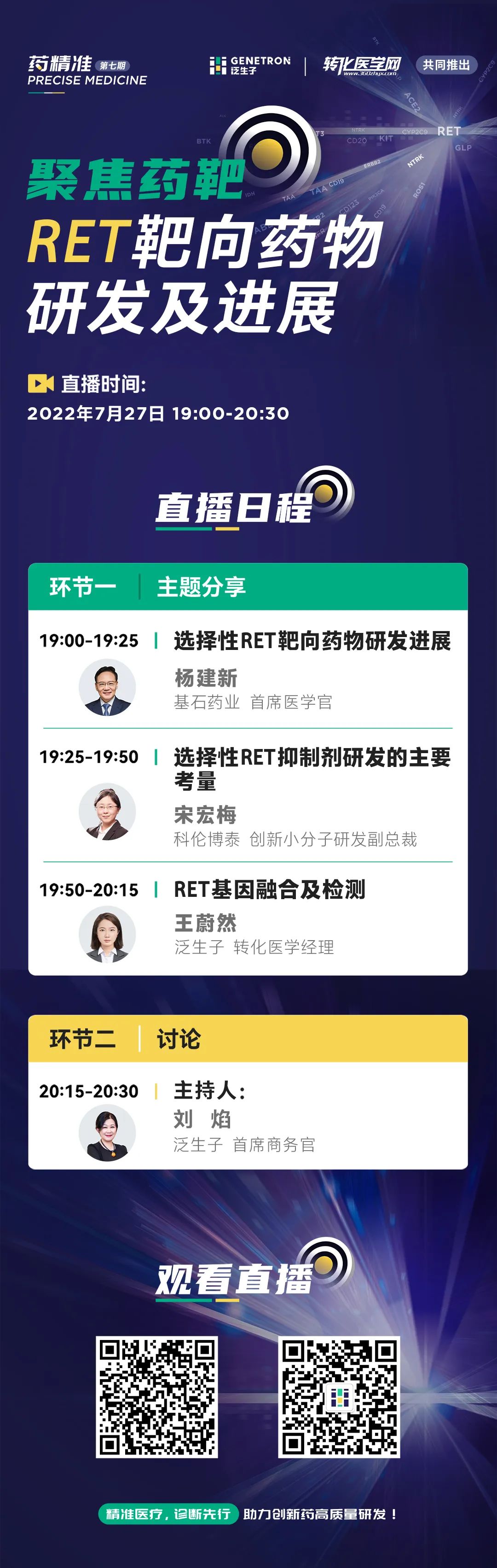 《药精准》是由泛生子联合转化医学网共同推出的“聚焦药靶,精准伴随”系列直播栏目,精准医疗,诊断先行,助力创新药高质量研发。