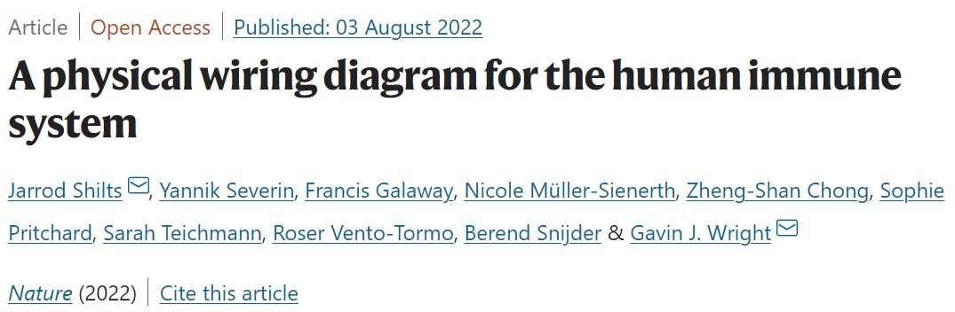 近日,发表在《Nature》上的一项由惠康桑格研究所(the Wellcome Sanger Institute),苏黎世联邦理工学院的科学家和合作者进行的研究,通过免疫系统图谱,向我们展示了全身免疫细胞是进行如何连接和交流的。