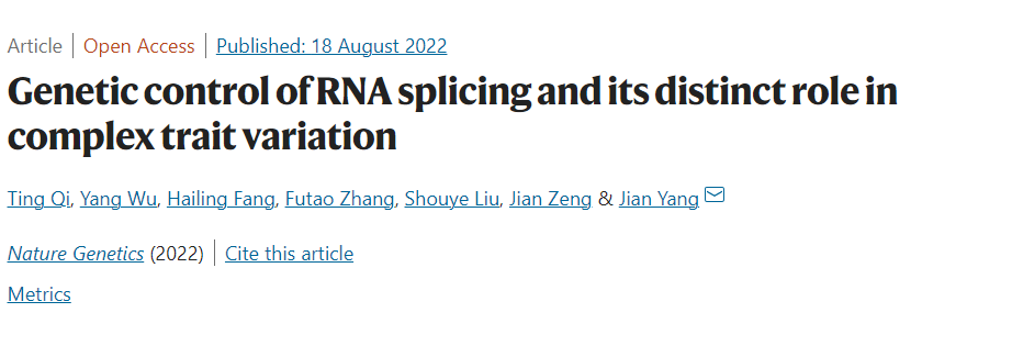 【Nature子刊】西湖大学杨剑团队绘制出最全RNA可变剪接遗传调控图谱