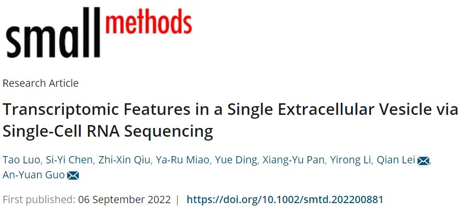【Small Methods】第一次!华中科技大学郭安源教授团队鉴定单个细胞外囊泡中的RNA特征