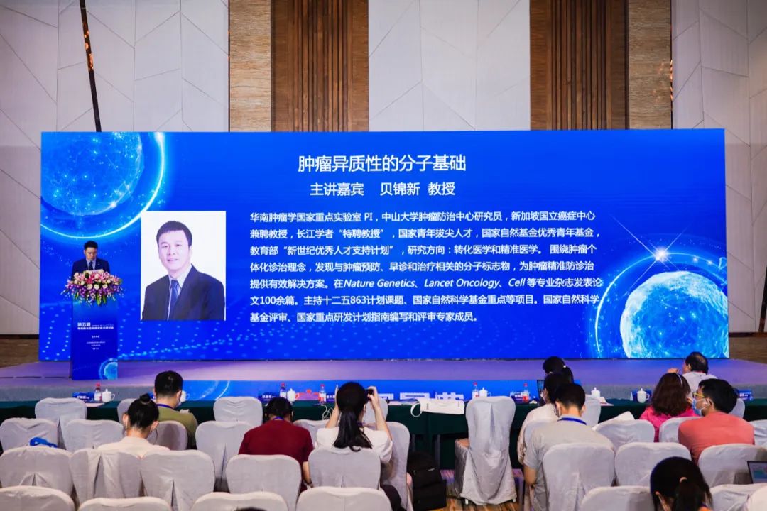 华南肿瘤学国家重点实验室的贝锦新教授以“鼻咽癌(NPC)肿瘤异质性的分子基础”为主题介绍了单细胞测序技术在解析 NPC 肿瘤细胞异质性和微环境(TME)异质性上的应用。贝教授认为肿瘤应包括基于表型的分子和细胞两个水平的研究,因此首先介绍了影响 NPC 肿瘤进展的分子遗传变异(如 RPA1 突变),得到了潜在的精准诊疗标志物和放疗增敏靶标;然后围绕解析 TME 特征以及发现新机制和新治疗策略两个科学问题,总结了肿瘤 TME 的基本研究路线:选取肿瘤组织、癌旁组织、炎症组织和外周血分选活性细胞及分离 PBMC,构建单细胞文库并开展高通量测序,进行包括细胞聚类、差异基因表达及富集分析、细胞互作分析和生存率分析等在内的数据分析,实现细胞类型、基因表达、信号通路、细胞相互作用以及分子分型等的科学解析。最后贝教授结合四篇 NPC 单细胞相关文章总结出单细胞测序技术揭示 NPC 微环境的研究方法,即揭示复杂的细胞类型、获得关键分子及其通路、实现基于 TME 的分子分型以及获得潜在靶向 TME 的治疗策略。贝教授的报告为鼻咽癌甚至所有肿瘤异质性和微环境的研究提供了强大的理论支撑,总结了非常切实可行的研究路线。