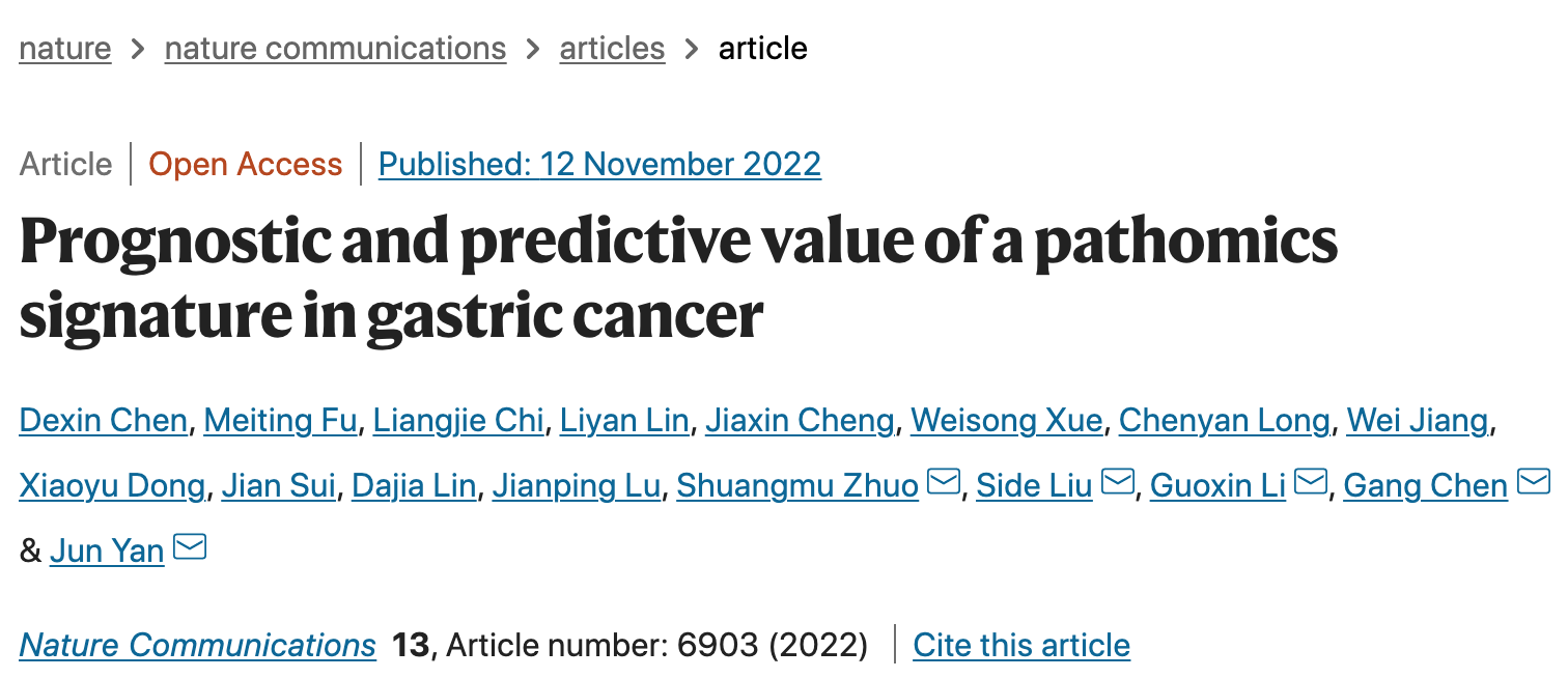 【Nature子刊】南医大团队发表胃癌研究最新成果,揭示病理学特征在胃癌中的预后和预测价值