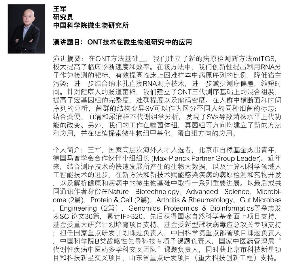 随着Oxford Nanopore持续向任何人、在任何地方开放测序,我们多年的创新使得纳米孔测序技术平台更加简单灵活,使用纳米孔测序进行研究的科学家们也获得了丰硕的成果。Oxford Nanopore和中国的知名专家及科研人员将在本次线上活动上分享纳米孔测序技术更新及其在基因组学、单细胞多组学、表观遗传学、生物信息学、病原检测等领域的最新应用成果。