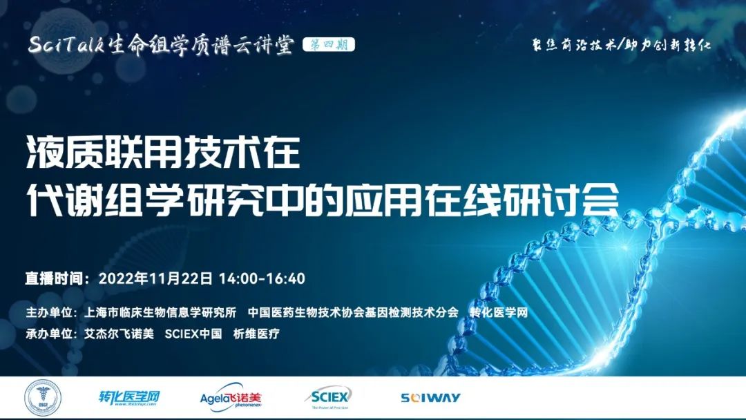 由上海市临床生物信息学研究所主办的“SciTalk生命组学质谱云讲堂”系列线上活动第4期,将于2022年11月22日举行。本次会议聚焦“液质联用技术在代谢组学研究中的应用”,邀请到国内多位科研大咖和组学专家分享最新研究进展和应用成果。活动由艾杰尔飞诺美、SCIEX中国、析维医疗共同承办,相关技术专家也将展示色谱质谱相关新技术,助力生命组学及精准医疗发展。