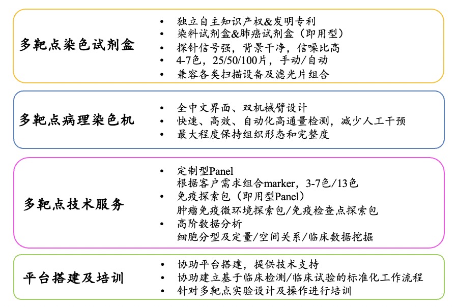艾克发生物作为国内早期进入多色领域的公司,深耕 mIHC 领域超 15 年的时间,拥有丰富的经验及完整的产品线,现已搭建最顶级的多色平台,其中包括染色标记平台,扫描成像平台和数据分析平台,能够为科研/临床转化赋能!