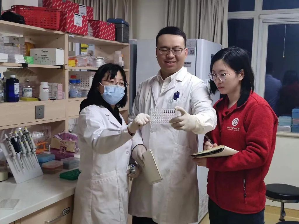 张宁教授团队人员孔瑞瑞(左)薛瑞栋(中)曹奇(右)工作中