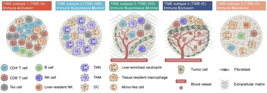 图2 肿瘤免疫微环境的 5 种亚型(TIMELASER)示意图