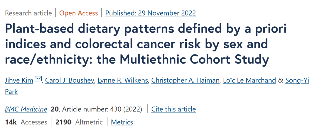 最近,发表在《BMC Medicine》上的一项研究发现,富含健康植物性食物(全谷物、新鲜水果和蔬菜)的饮食与男性患结直肠癌的风险降低有关。