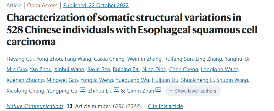 【Nature子刊】中国医学科学院詹启敏/刘芝华等:表征中国人群队列食管癌体细胞基因组结构变异