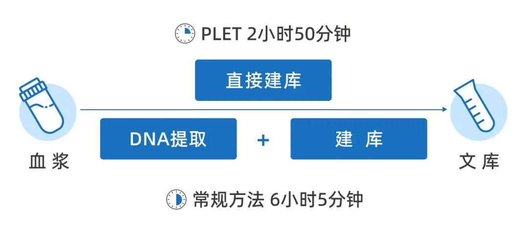 | 导读 | 近期,优迅医学联合北京大学人民医院张晓红教授团队研究开发了一种新的文库制备方法——PLET(plasma to library express technology 血浆转文库表达技术),其无需提取细胞的cfDNA(cell free DNA),可直接从血浆构建NGS文库。相较于传统NGS建库方法,PLET建库方法可有效减少50%以上的实验时间。 |