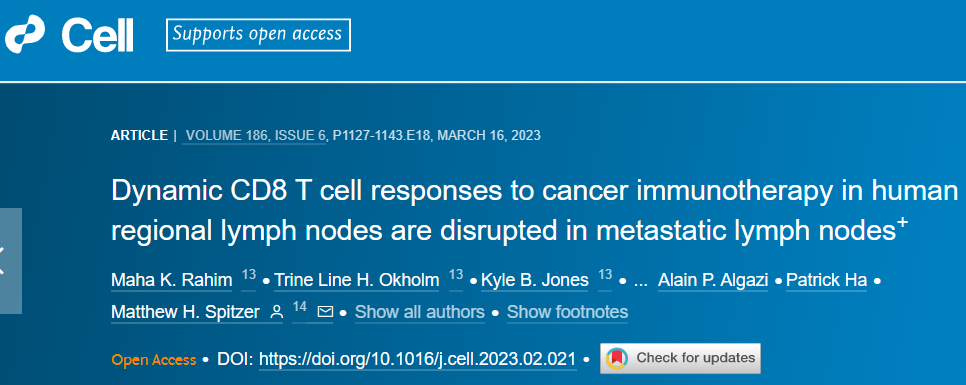 2023年3月16日,加州大学旧金山分校的研究人员在《Cell》期刊发表了研究论文,这项在头颈癌患者中进行的人体临床研究显示, 在免疫治疗结束前保持淋巴结完整,可以提高对抗实体瘤的疗效。