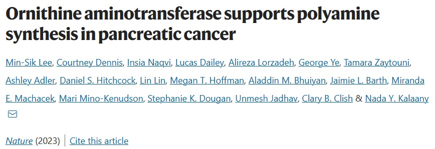 近日,波士顿儿童医院、麻省理工学院和哈佛大学的研究人员合作在知名期刊《Nature》发表研究论文“Ornithine aminotransferase supports polyamine synthesis in pancreatic cancer”,研究发现PDA对谷氨酰胺的从头鸟氨酸合成具有明显的依赖性,这为治疗胰腺癌患者提供了一个毒性最小的机具吸引力的治疗窗口。