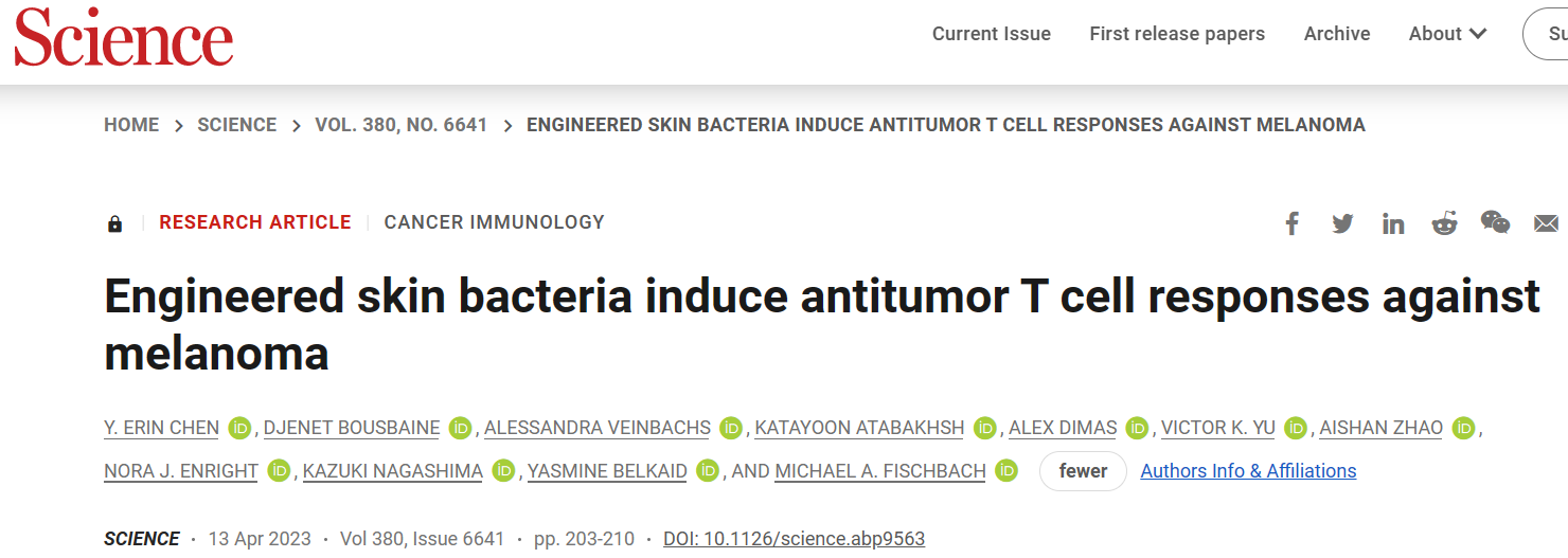 【Science】重磅发现!斯坦福大学巧妙改造皮肤细菌,激活免疫助力抗癌