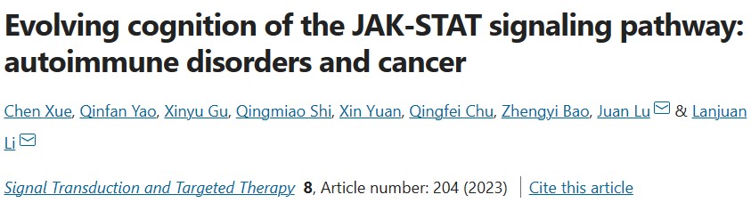 近日,浙江大学李兰娟等在《Signal Transduction and Targeted Therapy》上发表研究论文“Evolving cognition of the JAK-STAT signaling pathway: autoimmune disorders and cancer”,本文在先前研究的基础上,对JAK-STAT信号的成分、经典激活和负调控进行了全面研究,并特别强调了JAK-STAT信号传导的免疫调节作用以及JAK-STAT信号通路与某些疾病之间的遗传关联。除此之外,还详细讨论了JAK抑制剂在免疫相关和恶性疾病治疗中的应用,并在一系列临床和临床前试验中总结了其有效性和安全性。