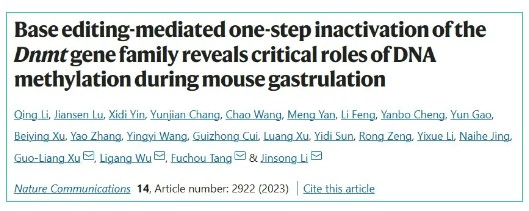最新!李劲松、汤富酬、吴立刚、徐国良发现DNA甲基化在小鼠原肠胚形成过程中的关键作用