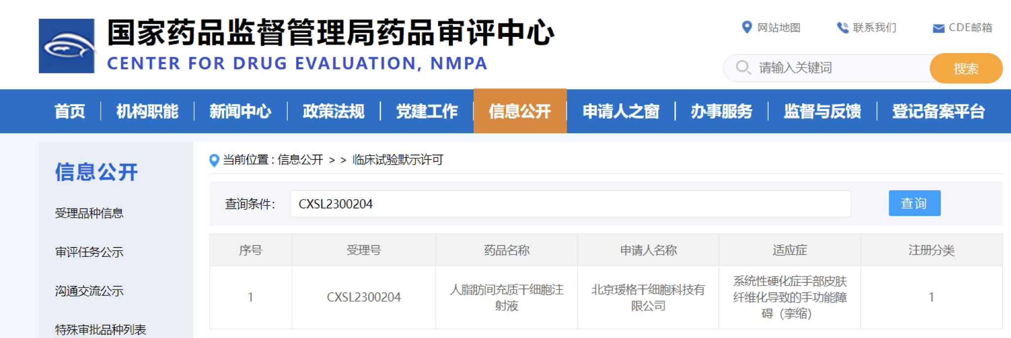 ▲国家药监局官网:瑷格干细胞“人脂肪间充质干细胞注射液”获临床试验默示许可