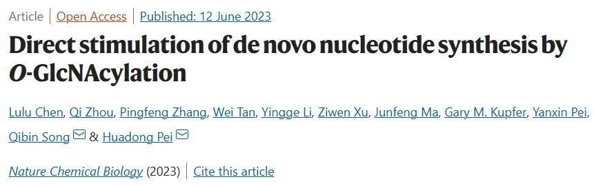6月12日,武汉大学研究团队联合乔治城大学团队在《Nature Chemical Biology》上发表题为“Direct stimulation of de novo nucleotide synthesis by O-GlcNAcylation”的研究论文,研究建立了O-GlcNAc信号,从头核苷酸合成和人类疾病(包括癌症和Arts综合征)之间的直接联系。