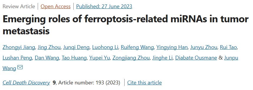 6月26日,中南大学湘雅医院王俊普和Diabate Ousmane 团队在《Cell Death Discovery》上发表题为“Emerging roles of ferroptosis-related miRNAs in tumor metastasis”的文章,重点探讨了铁死亡相关miRNA在肿瘤转移中的作用,旨在帮助读者理解它们之间的关系,为恶性肿瘤的潜在治疗策略提供新的视角。