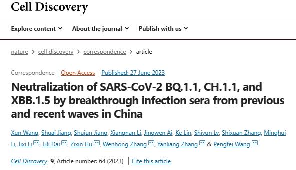 【Cell Discovery】王鹏飞/张文宏等团队评估对奥密克戎最新突变毒株的中和作用
