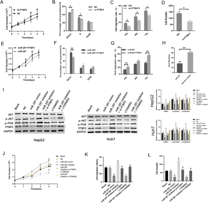 PTBP3表达降低可阻断PI3K/AKT信号通路,抑制HCC细胞的增殖、迁移和侵袭