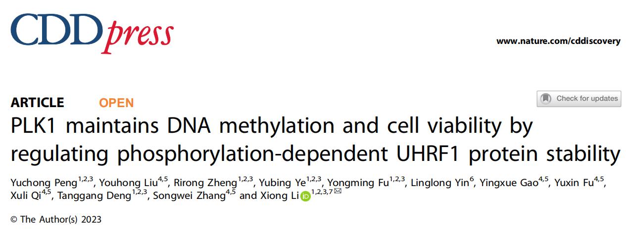| 导读 | 丝氨酸/苏氨酸激酶polo样激酶1(PLK1)已经报道通过诱导底物磷酸化在细胞有丝分裂、DNA复制和DNA损伤修复中发挥重要作用。然而,它在表观遗传调节中的作用,尤其是DNA甲基化调控中的作用仍不清楚。 |