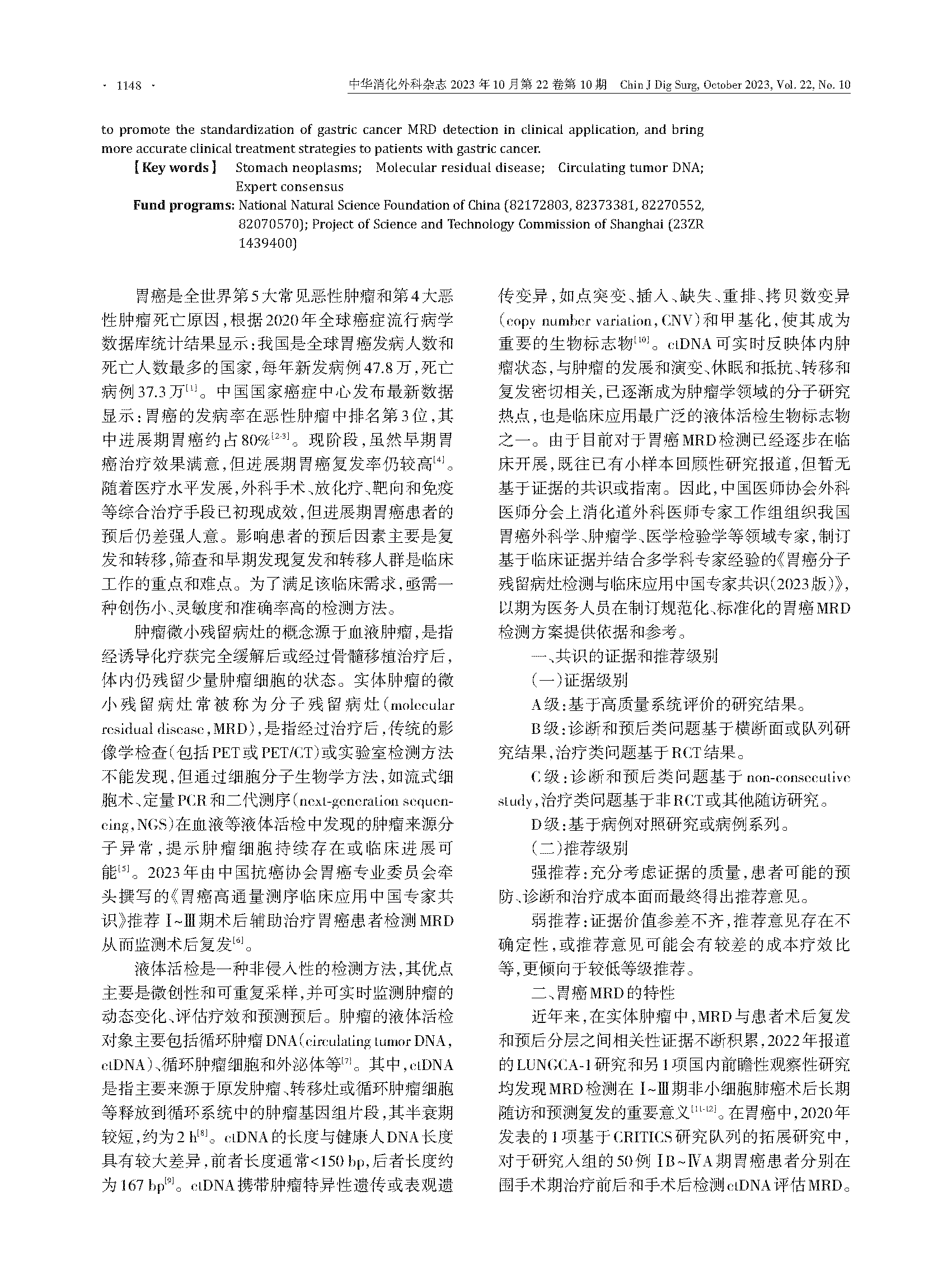 | 导读 | 我国首个《胃癌分子残留病灶检测与临床应用中国专家共识(2023版)》发布 |