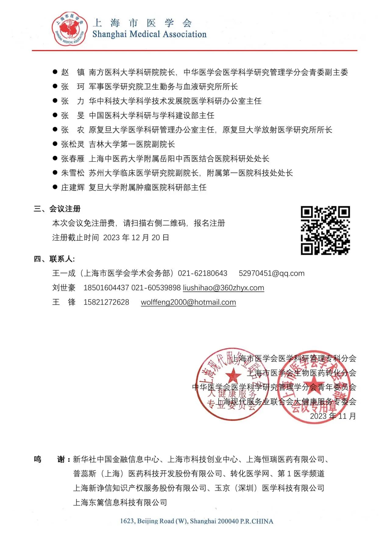 时间:2023年12月23日(星期六) 地址:上海市陆家嘴东园路18号中国金融信息中心3楼上海厅