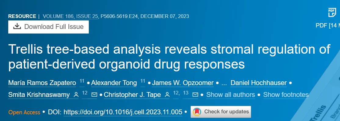 同日,发表题为“Trellis tree-based analysis reveals stromal regulation of patient-derived organoid drug responses”的第二篇文章,研究利用一种名为Trellis的方法对超过2500个患者衍生类器官和癌症相关成纤维细胞(CAF)培养物进行单细胞分析,揭示了患者特异性药物反应,并发现CAF可改变PDO的结肠干细胞状态,从而使PDO抵抗化疗。这些发现为癌症治疗策略提供了新见解。