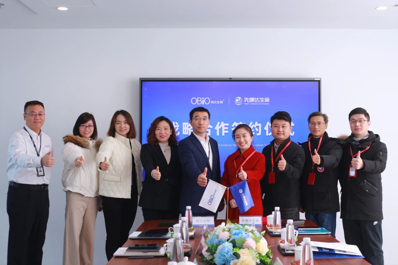 和元生物CEO贾国栋和先康达生命联合创始人兼CTO马丽雅签署战略合作协议