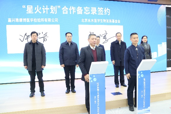 发布会上雅康博医检所发布了国际首款拥有自主知识产权的肿瘤靶向TGS 研究使用(RUO)的试剂盒。浙江清华长三角研究院黄开胜院长、王根良副院长、嘉兴市邢海华副市长、市医保局孙庆华局长、南湖区王存乡副区长、科技城江军副主任、市卫健委戴叶华副主任、市科协刘加庚副主席等受邀出席了本次新品发布会。