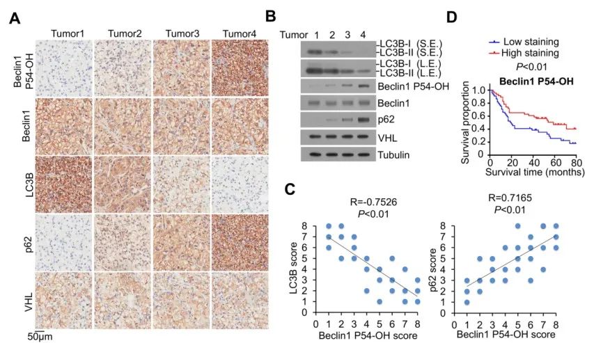 Beclin1 P54-OH 水平与人 ccRCC 中的自噬水平呈负相关,可预测患者的不良预后