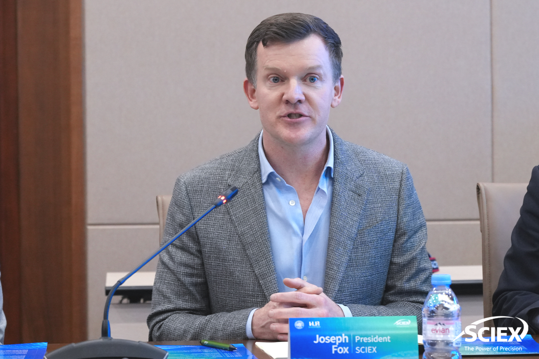 复旦大学人类表型院执行院长田梅教授, 常务副院长杨忠教授和SCIEX 全球总裁Joseph Fox先生出席了当天的活动并致辞。