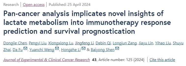 4月25日,上海交大研究团队在期刊《Journal of Experimental & Clinical Cancer Research》上发表了研究论文,题为“Pan-cancer analysis implicates novel insights of lactate metabolism into immunotherapy response prediction and survival prognostication”。本研究中,研究人员揭示了LM与免疫治疗耐药之间的密切相关性,并进一步建立了泛癌症LM. sig,它有可能成为选择适合免疫治疗的患者的有竞争力的工具。