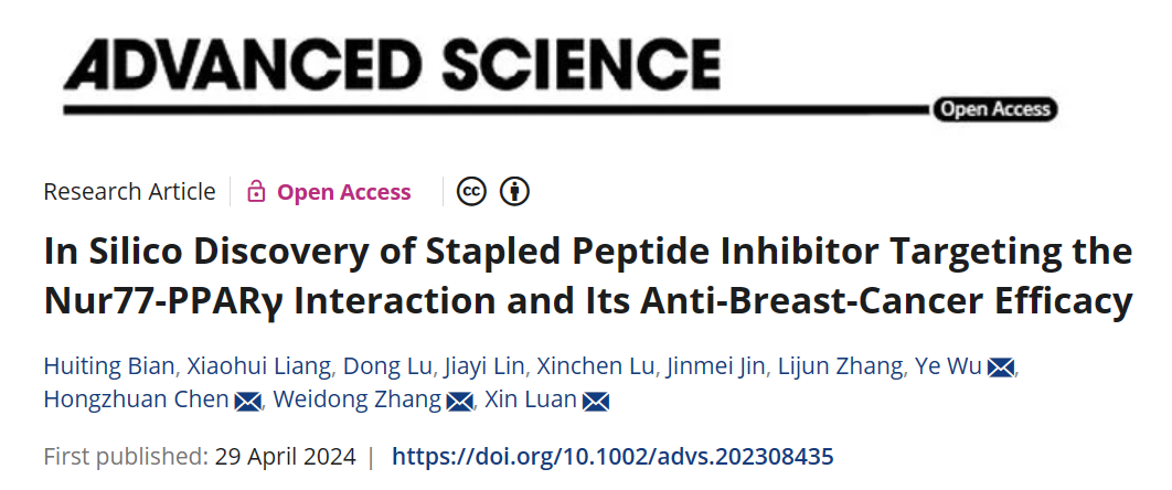 【Adv. Sci.】上海中医药大学研究团队开发新型抗乳腺癌肽抑制剂