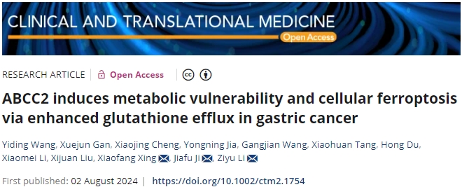 8月2日,北京大学研究团队在期刊《Clinical And Translational Medicine》上发表了研究论文,题为“ABCC2 induces metabolic vulnerability and cellular ferroptosis via enhanced glutathione efflux in gastric cancer”,本研究中,研究人员发现ABCC2高表达与较好的预后相关,rs717620可通过干扰ETS1和SOX9的结合影响ABCC2的表达。GC细胞系的功能获得和功能丧失实验表明,氨基酸剥夺降低了ABCC2-high GC细胞的增殖,迁移和耐药性。ABCC2导致细胞内氨基酸库减少和细胞能量代谢中断。这种现象是由ABCC2介导的谷胱甘肽(GSH)外排引起的,从而导致氧化还原状态的变化,进而增加细胞对铁死亡的易感性。此外,研究人员还使用了患者来源的器官样组织和肿瘤样细胞群来观察ABCC2对治疗效果的影响。在ABCC2表达较高的异种移植模型中,研究人员观察到限制氨基酸摄入并抑制GPX4活性可导致明显的肿瘤消退。综上,研究结果表明,ABCC2通过介导GC中的GSH外排在氨基酸代谢和铁死亡中发挥重要作用。这一发现强调了联合多个铁死亡靶点作为ABCC2高表达胃癌有前景的治疗策略的潜力。