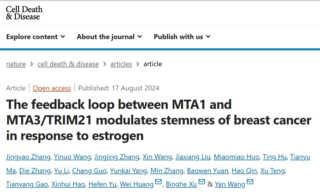 【Nature子刊】协和医学院王艳团队:MTA1有望成为乳腺癌治疗的新靶点